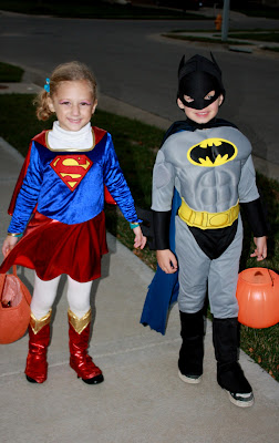Sunday was all about the treats. We enjoyed a lazy Sunday afternoon and geared up for the evening ahead. The kids had a blast trick-or-treating as usual. It was a bit chilly out and the wind didn't help but we didn't let that stop us. Batman had a hard time waiting for Robin to get to the doors with him but we got several comments on how cute their costumes were.